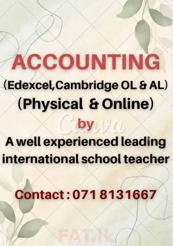 Leading International school teacher having more than 15 years of experience in teaching Accounting for A/L and O/L students for both Edexcel and Cambridge syllabuses. MBA, BBA (Accounting special), and CIMA.