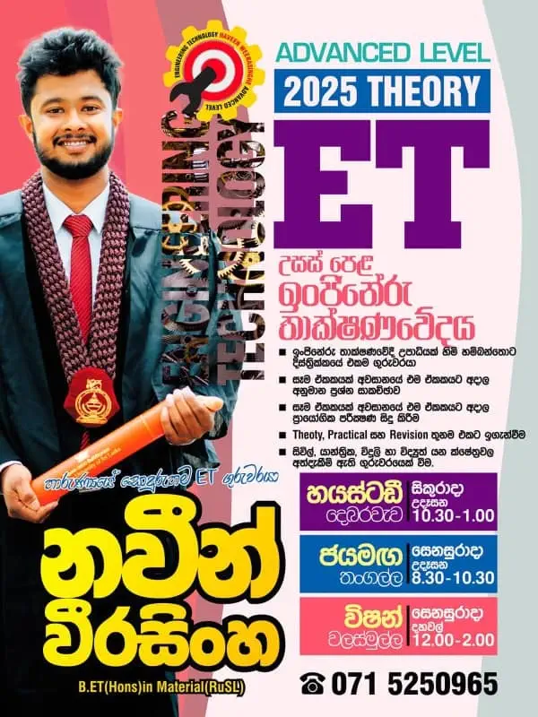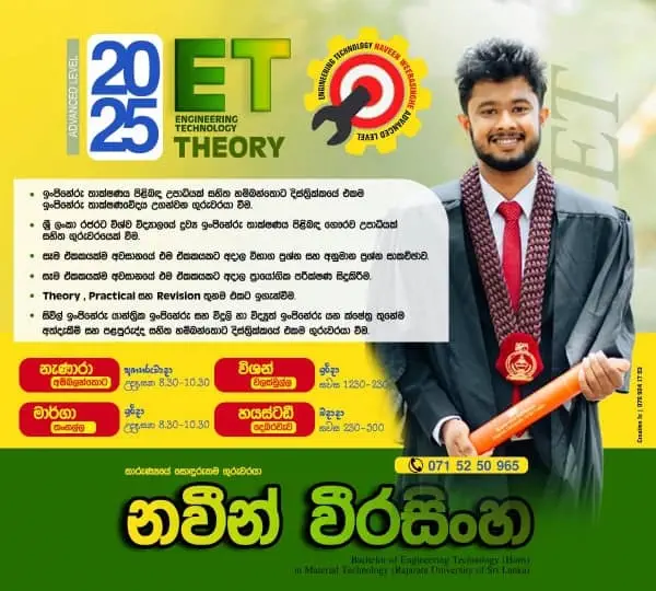 Theory, practical, Revision තුනම එකට උගන්වන එකම ET පන්තිය