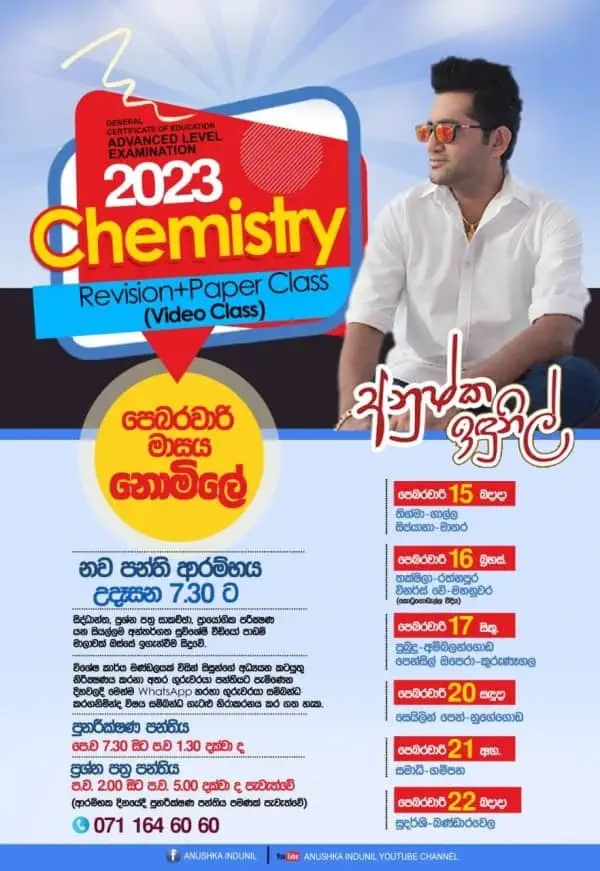 කලට වේලාවටත් පෙර විශය නිර්දේශය ආවරණය කිරීමෙන් අනතුරුව සිසුන්ට අතිරේක උදව්වක් ලෙස මෙවර උසස් පෙළ සදහා අප ලබාදුන් රසායන විද්යාව අනුමාන අතරින් කාබනික පරිවර්තන තුනම, Inorganic සදහා Co සහ Zn වලින් ලැබුණු ප්රශ්න ආදී වශයෙන් විශාල ප්රමාණයක් සාර්ථක විය.