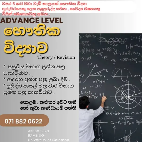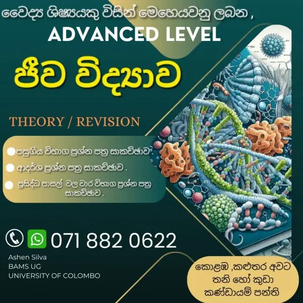 වෛද්ය ශිෂ්යයකු මෙහෙයවන A/L තනි හෝ කණ්ඩායම් පන්ති. කොළඹ කළුතර අවට