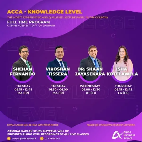 We conduct ACCA & CFA classes - physical, blended learning or online classes for Sri Lankan and International students.