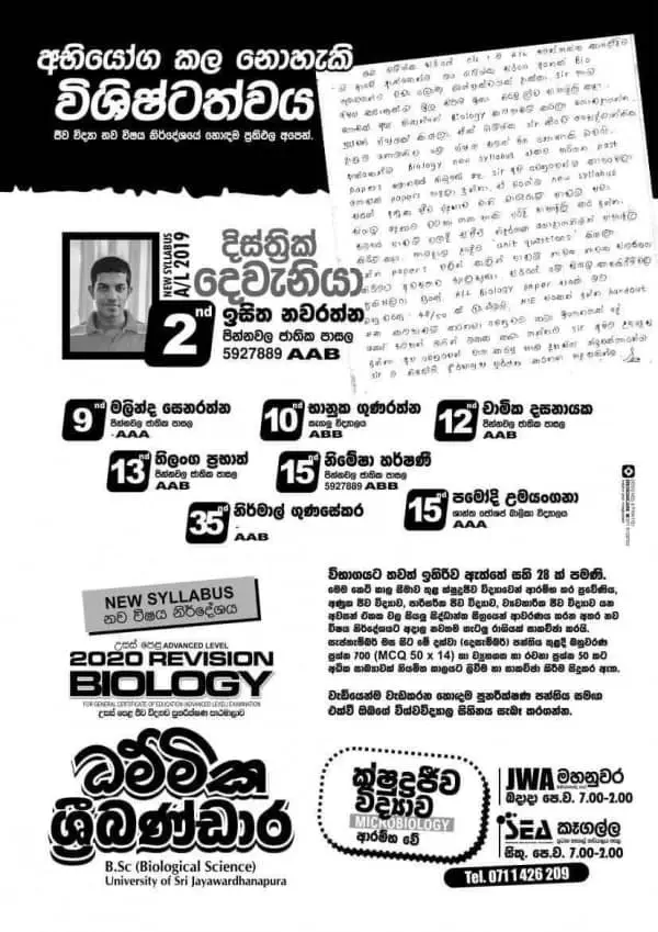 BSc (Biological Science) - University of Sri Jayawardenapura
