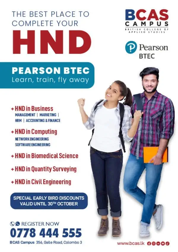 Established in the year 1999, British College of Applied Studies popularly known as BCAS CAMPUS has shown a steady growth and is now one of the few leading vocational and tertiary providers in Sri Lanka. BCAS is renowned for having a friendly environment – home for a vibrant community of 3,500+ students of all ages and backgrounds. BCAS offers courses at different levels in collaboration with globally recognized universities and qualifications awarding bodies. Courses are offered at BCAS in wide range of market relevant disciplines such as Computing, Business, Accounting & Finance Bio Medical Sciences, Quantity Surveying, Civil Engineering, Law, Software Engineering, Cyber Security, Computer Networks, Marketing and Project Management. These courses offered through two main campuses and three regional campuses located in major cities of Sri Lanka. Our facilities and resources are top notch with timely and regular international verification done by Pearson UK as well as our collaborative university partners.