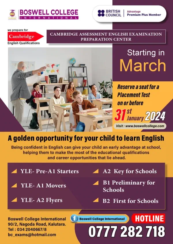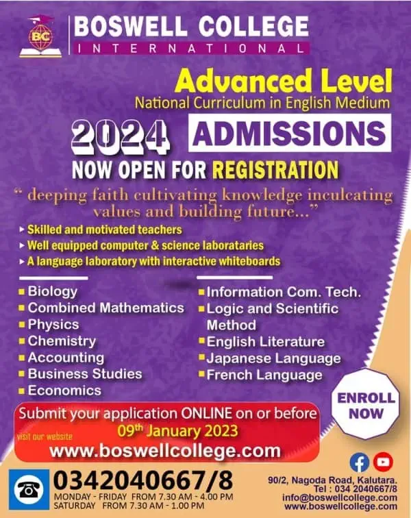 The Boswell International College provides education to all children from the age of 2 years with Montessori classes to the age of 15 years, with students following either local or U.K. stream of education. In addition to the mainstream education, at Boswell College International, the day scholars as well as the children from the wider community have the opportunity to improve themselves by making use of the facilities such as drama, dancing, leadership building, elocution etc. These additional facilities are provided in collaboration with the highly reputed professionals from island wide thus giving our local children the greatest possible exposure at their door step.