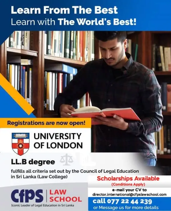 Since 1992 we have been preparing students for the Entrance Examinations for the Sri Lanka Law College. Every year over 90% of the students entering the Sri Lanka Law College are CfPS Students. In the past two decades, CfPS has also consistently produced the student who was placed first in the order of merit in the Law Entrance examination.