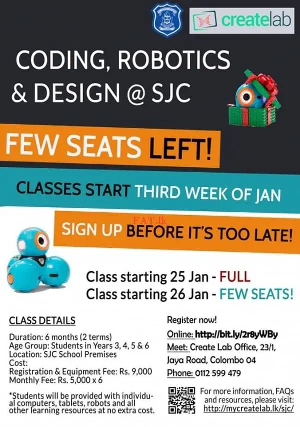 - Bespoke Workshops - We provide highly engaging coding, robotics & design workshops and activities in multiple formats for government agencies, corporates, social outreach organisations. Our clients include Fortune 500 companies, Sri Lanka’s top listed companies and international NGOs
