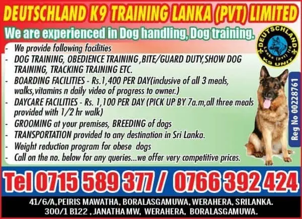 Our company has been around for a full 10 years and is a well experienced organization. We currently provide accommodation for all dogs and are passionately committed to provide proper training for all the categories you need. All the trainers in our organization have more than 10 years of experience and are even qualified at the international level. Not only that, we have a very strong program in place. Currently, we have two dog care and training centers in boralesgamuwa town and our teams are available at down south and north-south