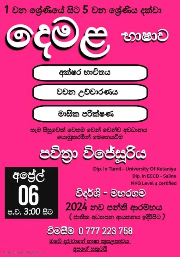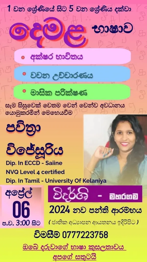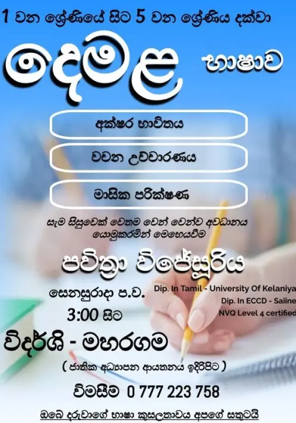 1 වන ශ්රේණියේ සිට 5 වන ශ්රේණිය දක්වා දෙමළ භාෂාව.
