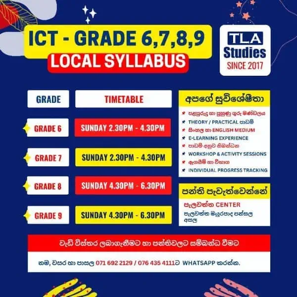 * English and Sinhala medium.
