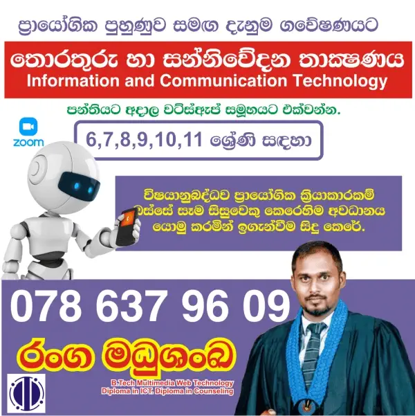 Classes are conducted at following location(s)Teacher would visit students' homes in following locationsKandy District, Sri LankaKandy Online ClassesClasses are conducted online (Or educational material available online). You can join the class (or read educational material) from anywhere in the world.