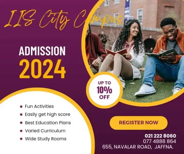 IIS City Campus is a dynamic, modern higher educational institution situated in Jaffna city, Sri Lanka, with state of the art facilities. It was an offshoot of IIS which was established in 1996
