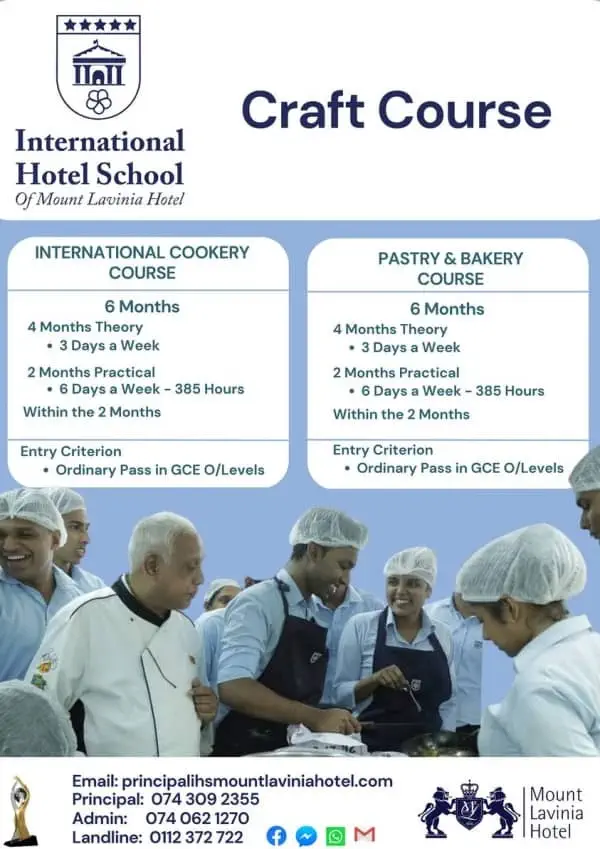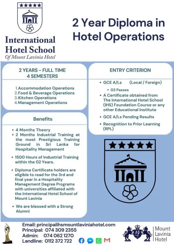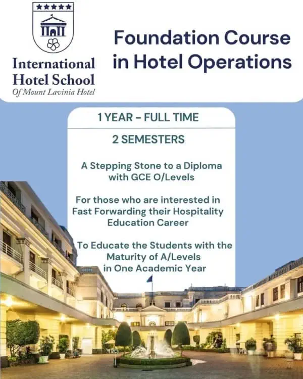 It is the only hotel school which is linked to a premier hotel in Sri Lanka; Mount Lavinia Hotel.