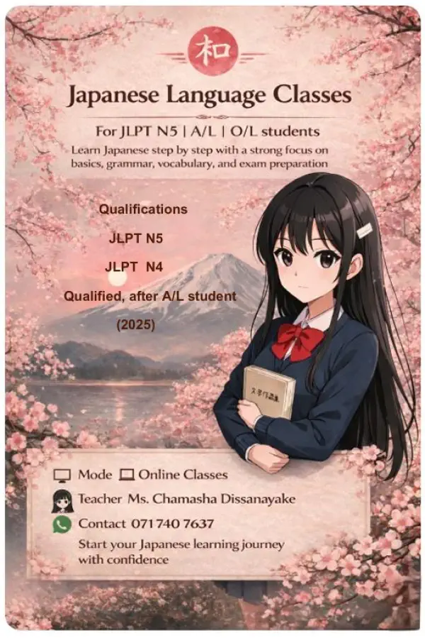 I am an after A/L student (2025), who is qualified with JLPT N5 and N4 levels.