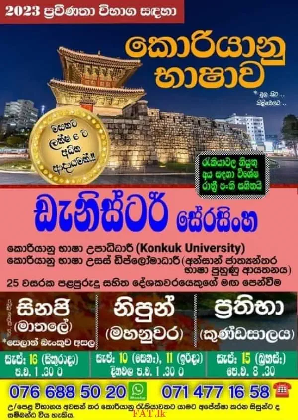 25 වසරක් පුරා දහස් සංඛ්යාත සිසුන් පිරිසකගේ *කොරියානු* සිහිනය සැබෑ කළ විශ්වාසනීය පාඨමාලාවට ඔබ සැම සාදරයෙන් පිළිගනිමු.