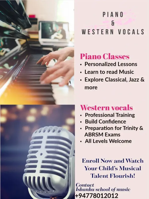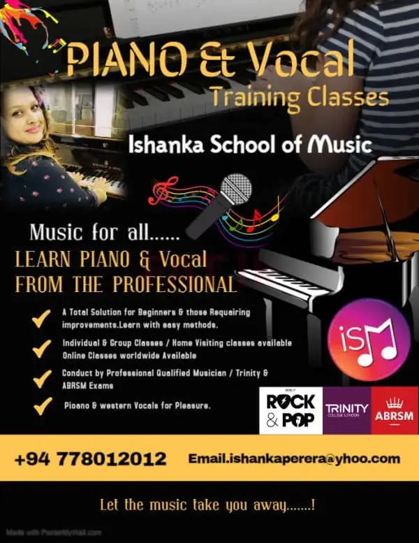 currently the piano and western vocal teacher for music lounge Qatar and also the founder at Ishanka school of music where i cultivate students interest in piano & vocal development by teaching instrumental and vocal techniques, scales, theory and also pop music, also explaining the pitch, tempo, rhythm and other concepts that are fundamental to playing & singing.