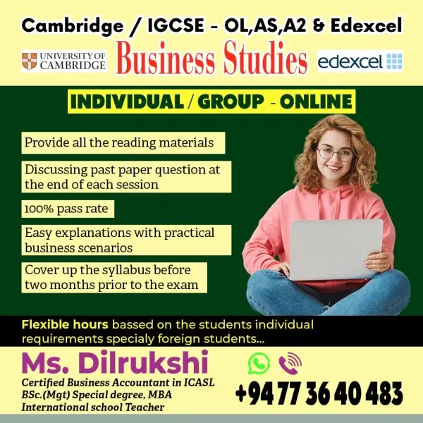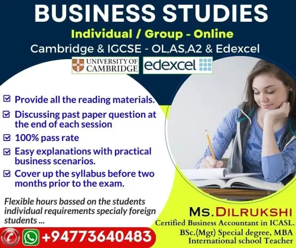 Business studies teacher at reputed International school for Cambridge OL and AL with 8 years teaching experience.