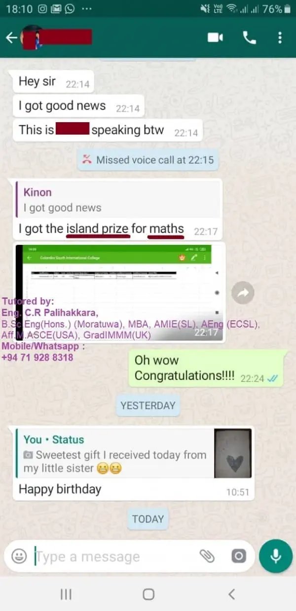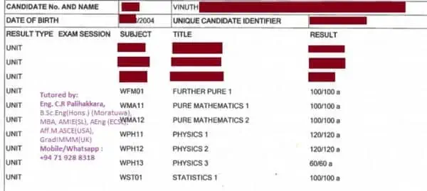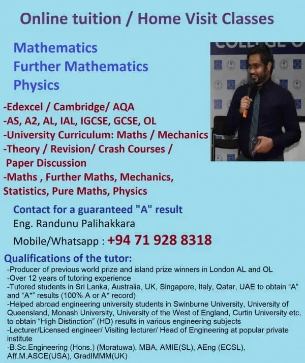 Tutored students in Sri Lanka, Australia, UK, Singapore, Italy, Qatar, UAE via online classes to obtain “A” and “A*” results (100% A or A* record)