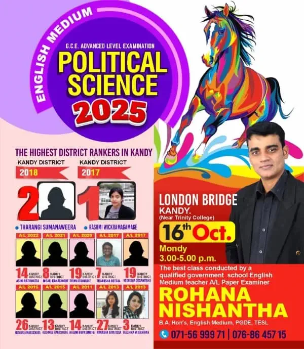 Political Science English Medium classes are exclusively conducted by an experienced government school English medium teacher with 10 years experience of Advanced Level paper marking.