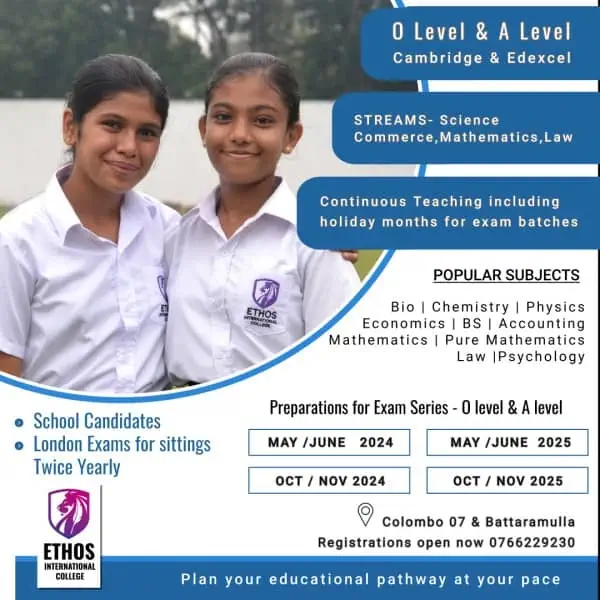 Visit www.ethoseducation.lk or call 0766229230 for registrations.