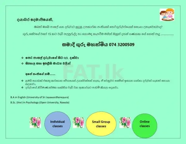 Classes are conducted at following location(s)Teacher would visit students' homes in following locationsOnline ClassesClasses are conducted online (Or educational material available online). You can join the class (or read educational material) from anywhere in the world.