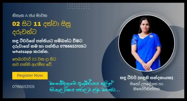 Be the first to write a Review / Testimonial about සඳුනි සන්දනායක (සඳූ ටීචර්)