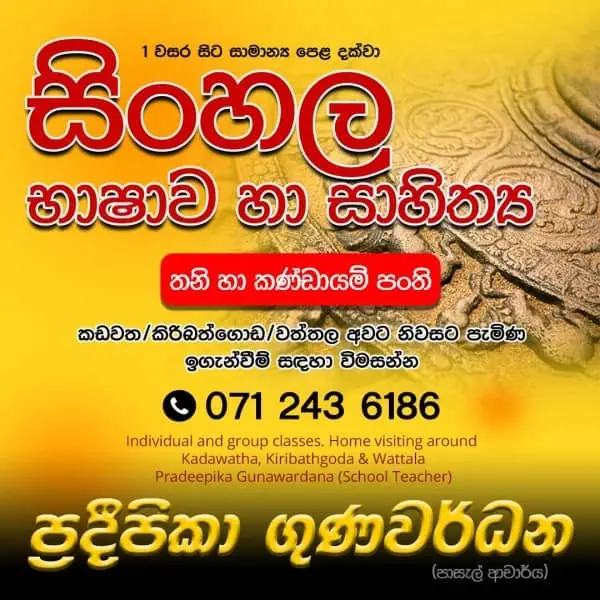 Individual and group classes. Home visiting around Kadawatha, Kiribathgoda & Wattala