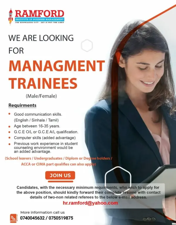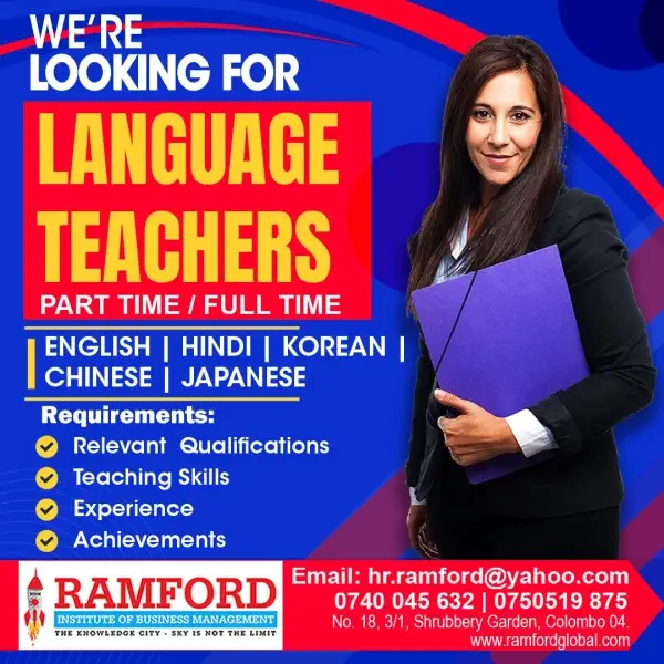 We are looking for teachers & lecturers for school children (local & international O/L & A/L) & school leavers for professional courses such as ACCA / CIMA / CA / CMA / Banking / aat & academic qualifications such as diploma, higher diploma, bachelors degrees & masters degrees in the field of sales & marketing, HR, Accounting, Finance, IT & Business Management and also language courses such as spoken English, Spoken Hindi, Spoken Korean, Spoken Japanese & Spoken Arabic & so on.