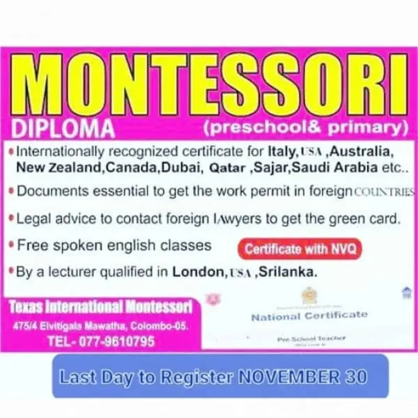 Texas International Montessori Teacher Training Academy certified by Tertiary and Vocational Education Commission (TVEC), Sri Lanka.