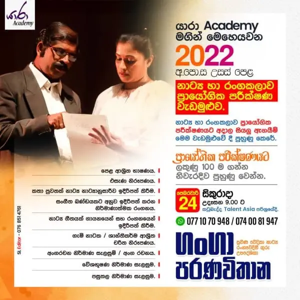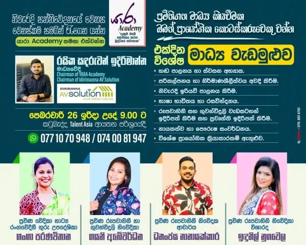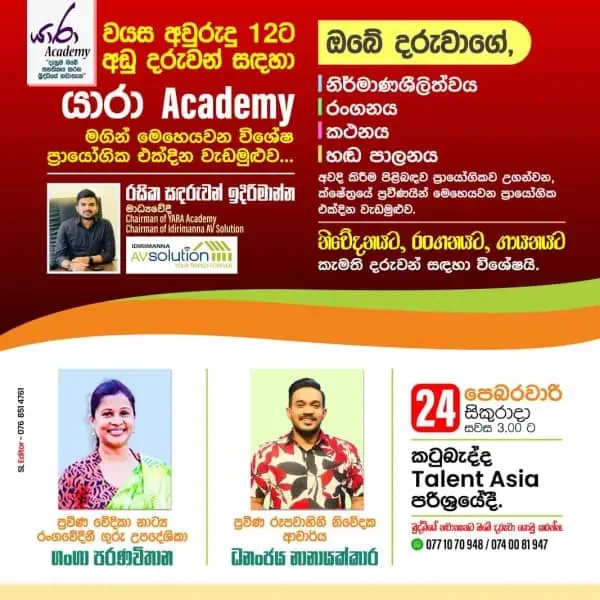 ආදී හැකියාවන් අවදිකරගැනීමට යාරා Academy මගින් මෙහෙයවන එක්දින වැඩමුළුවට සහභාගී කරවන්න. ක්ෂේත්රයේ පළපුරුදු ප්රවීණ දේශකවරුන් විසින් මෙහයවනු ලැබේ.