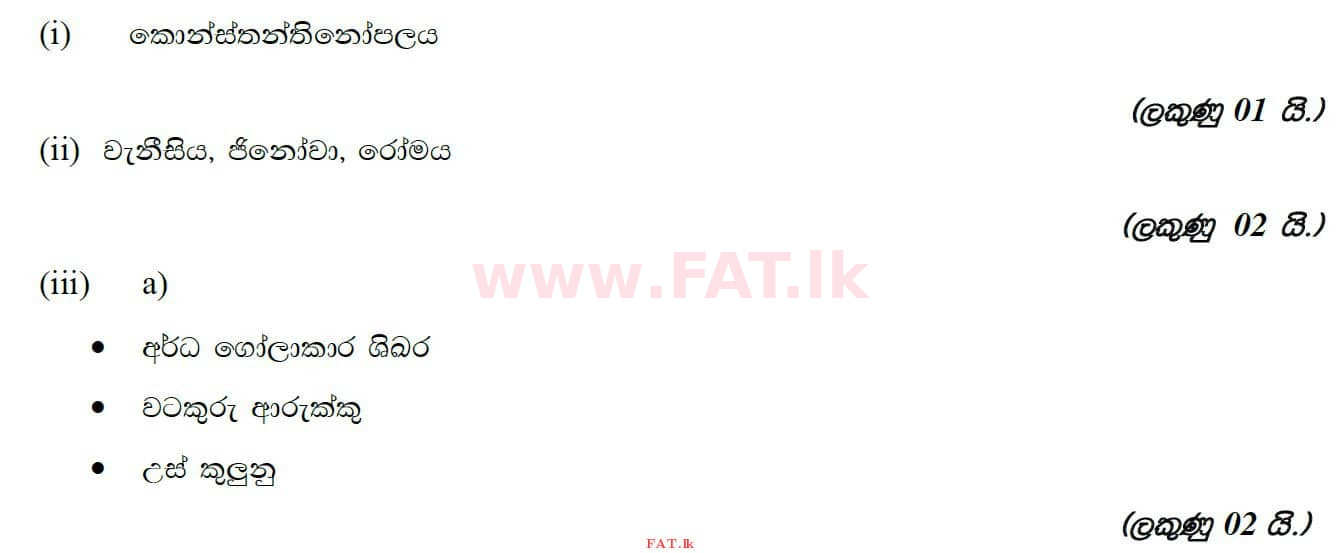 National Syllabus : Ordinary Level (O/L) History - 2020 March - Paper II (සිංහල Medium)