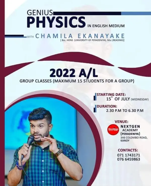 උ/පෙ භෞතික විද්යාව කණ්ඩායම් පන්ති ඉංග්රීසි මාධ්යයෙන්