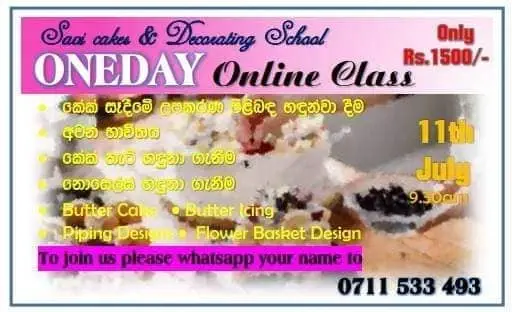සතිඅන්ත දින කේක් පාඨමාලා සොයන ඔබට නව පාඨමාලා ආරම්භය.