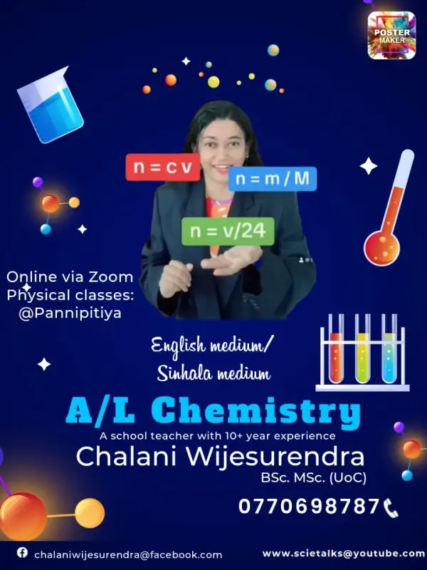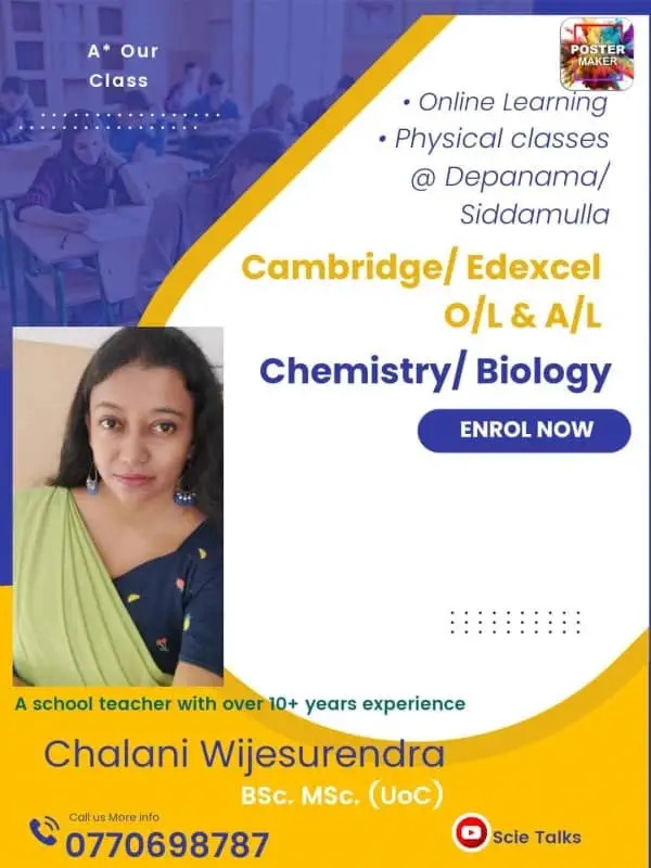 O/L and A/L Cambridge / Edexcel රසායන / ජීව විද්යා / G. C. E. විද්යා පන්ති