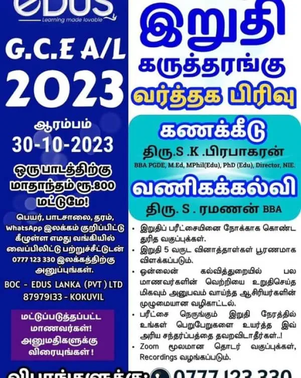 Leading Online Live Learning Platform catering all educational requirements of Students in all Tamil, Sinhala and English Mediums across Sri Lanka.!