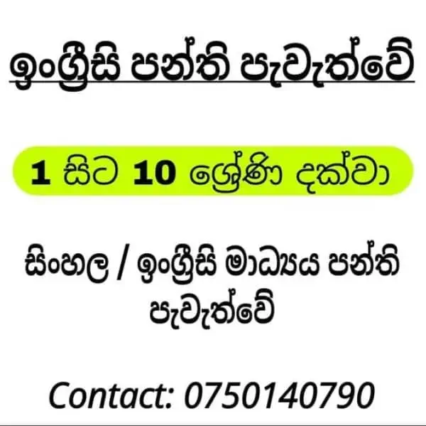 ශ්රේණිය 1 සිට ශ්රේණිය 10 ඉංග්රීසි, ගණිතය, විද්යාව පන්ති
