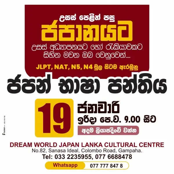 NAT N-5 විභාගය ඉලක්ක කරමින් ආරම්භ කිරීමට නියමිත ජපන් භාෂා පුහුණු පන්තිය ZOOM තාක්ශනය ඔස්සේ.