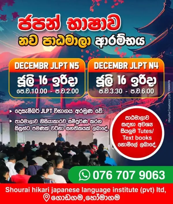 ජපන් භාෂා පන්ති / Japanese Language Classes / O/L, A/L, JLPT, NAT, KIDS Grade 01-09 (076 70 79 063)