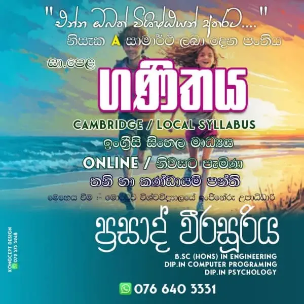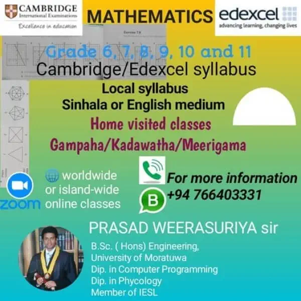 ගුරුවරයා/ගුරුවරිය විසින් පහත සඳහන් ආයතන/ස්ථානයන්හි පන්ති පවත්වනු ලබයිගම්පහ දිස්ත්රික්කය, ශ්රී ලංකාවයක්කල ගුරුවරයා/ගුරුවරිය විසින් පහත සඳහන් ස්ථානයන්හි සිසුන්ගේ නිවෙස් වලට ගොස් පන්ති පවත්වනු ලබයිකොළඹ දිස්ත්රික්කය, ශ්රී ලංකාවකොළඹ ගම්පහ දිස්ත්රික්කය, ශ්රී ලංකාවකටුනායක මාර්ගගත පන්තිමාර්ගගත පන්ති පවත්වනු ලබයි. ඔබට ලෝකයේ ඕනෑම තැනක සිට පන්ති හා සම්බන්ධ විය හැක.