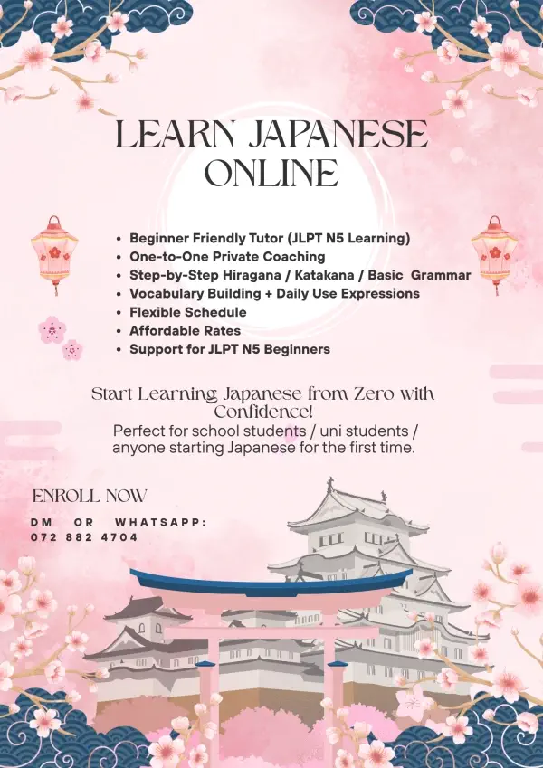 I really enjoyed learning Japanese with this teacher! The lessons were clear, well-organized, and easy to follow even as a beginner. The teacher explained grammar and vocabulary in a simple way and gave lots of practice for speaking and writing. I also liked how patient and friendly they were — it made learning fun and comfortable. Highly recommended for anyone starting from N5 level! 🇯🇵✨