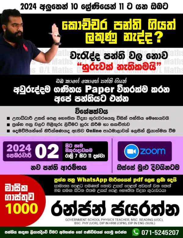 ලංකාවේ No 1 Online 2024 O/L Mathematics Paper Group Class (Sinhala & English) එක ආරම්භ වන වගයි.