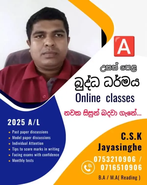සාමාන්ය පෙළ උසස් පෙළ බුද්ධ ධර්මය පංති