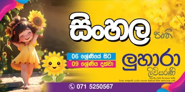 සිංහල online හෝ මාගේ නිවසේදී පැවැත් වේ. මා කැලණි විශ්වවිද්යාලයීය බාහිර උපාධිය හාදාරන සිසුවියක් වේ. ඔබේ දරුවාගේ සිංහල දැනුම ඉතා ඉහල තැනකට ගෙන එමි. ව්යාකරණ දැනුම අඩු දරුවාගේ එම මට්ටම වැඩි තැනකට ගෙන එමි