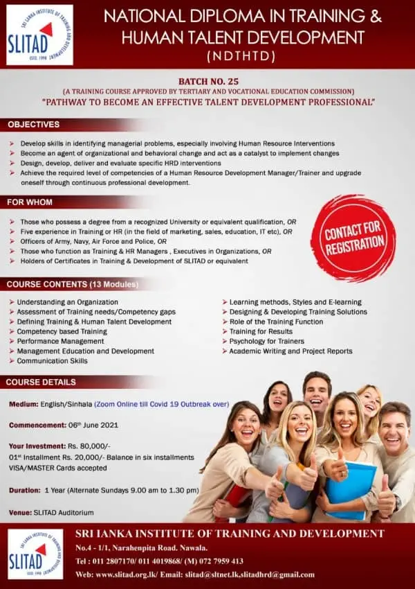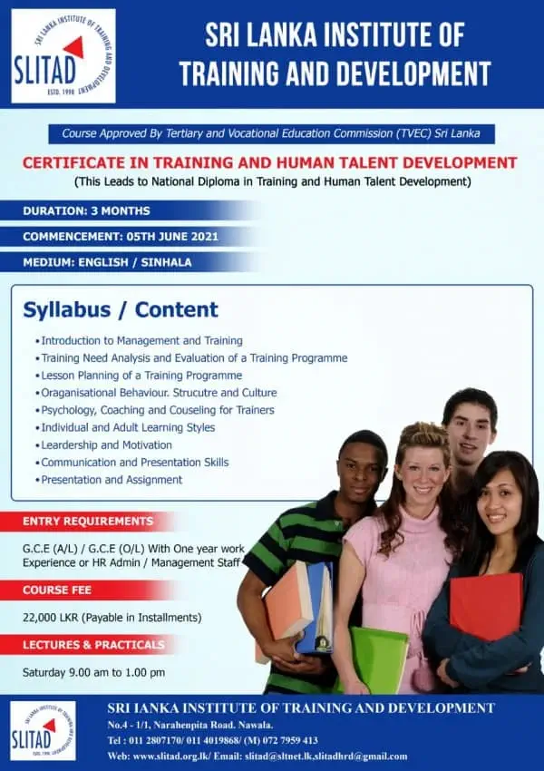 Sri Lanka Institute of Training and Development (SLITAD) was founded in 1998 by a group of HRD Professionals