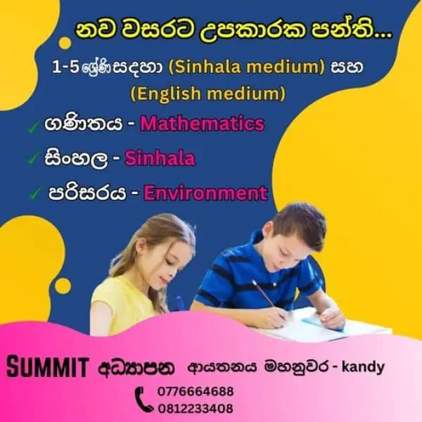 Grade 1 to 5 English and Sinhala medium classes