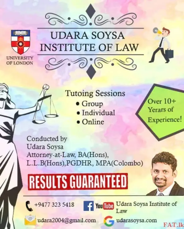 An experienced senior law lecturer who is educated in United States and UK with experiences in lecturing at leading institutes in Sri Lanka and Singapore is conducting London LLB classes in Colombo.
