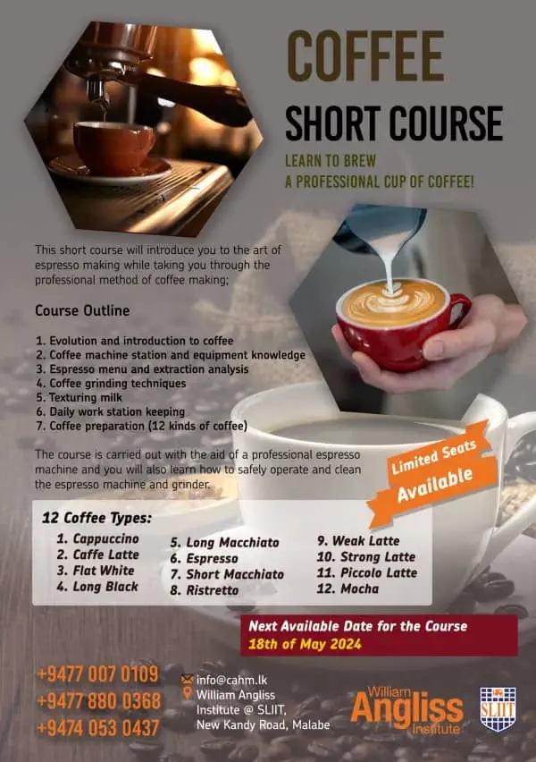 The Colombo Academy of Hospitality Management (CAHM), is a joint venture between William Angliss Institute, Melbourne and is based in the SLIIT campus, Malabe. We are a dedicated centre for Hospitality, Culinary Arts, Tourism Studies and Events. William Angliss has a proud history of over 75 years, and in our Melbourne campus we annually have over 21,500 local clients and students and 1,300 international students from over 45 countries with more than 100,000 graduates worldwide. Our training facilities include a well-equipped training kitchen, including a functioning in-house restaurant. Our courses are designed with industry needs in mind, and work to ensure that our graduates are “Career Ready”